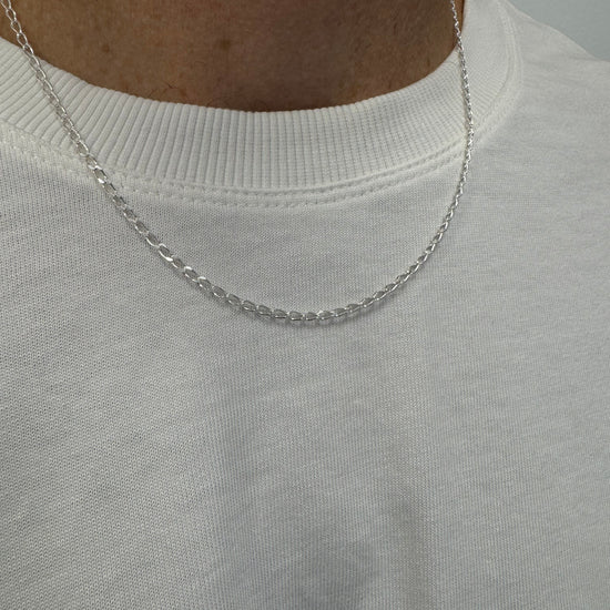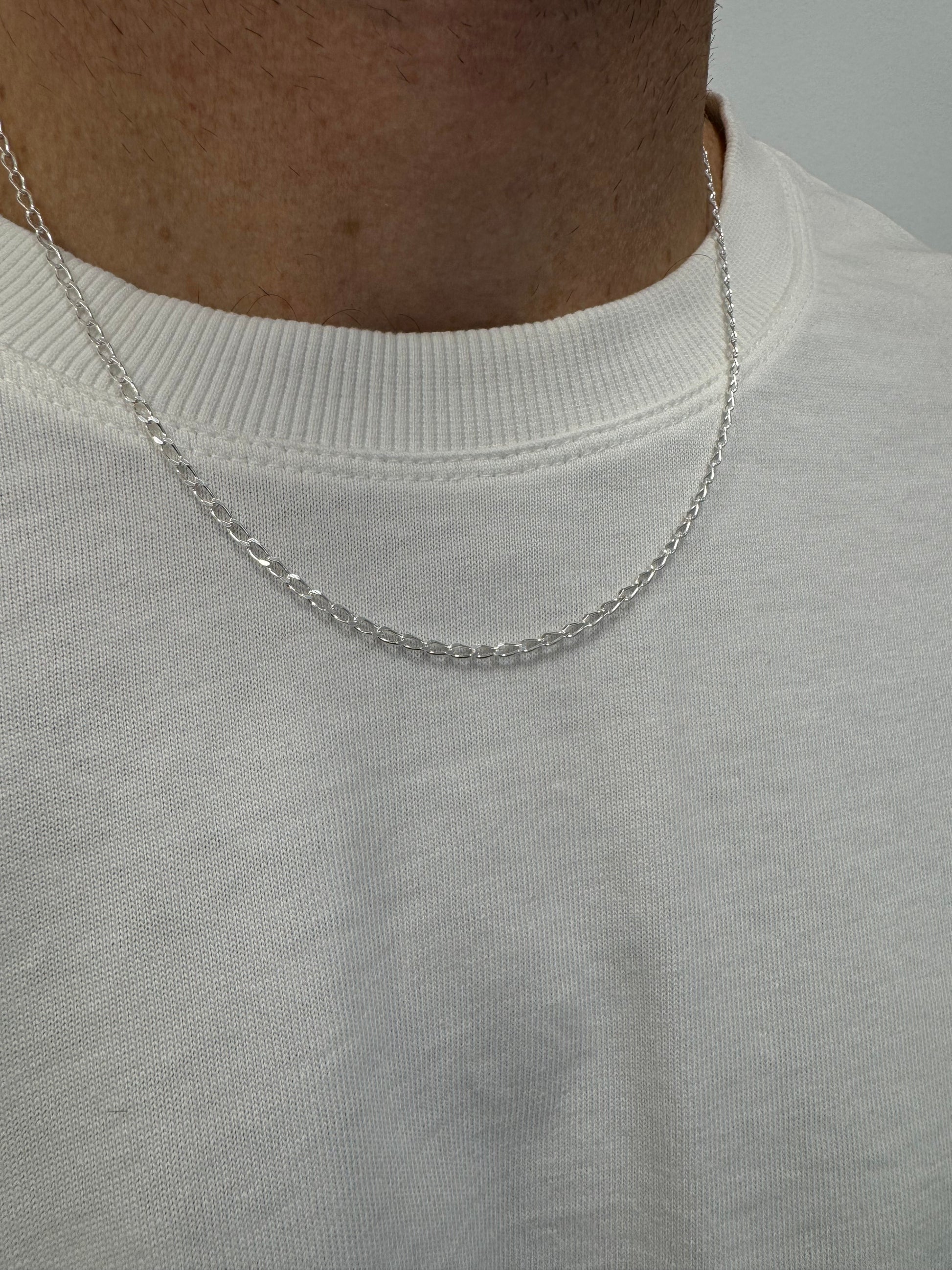 925 sterling silver Long Link Curb Diamond Cut Chain.